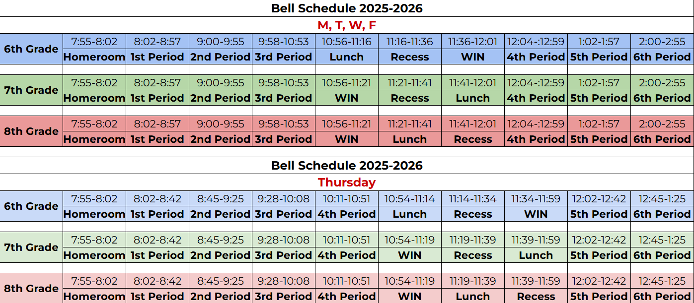 Monday, Tuesday, Wednesday and Friday: 7:55am - 2:55pm